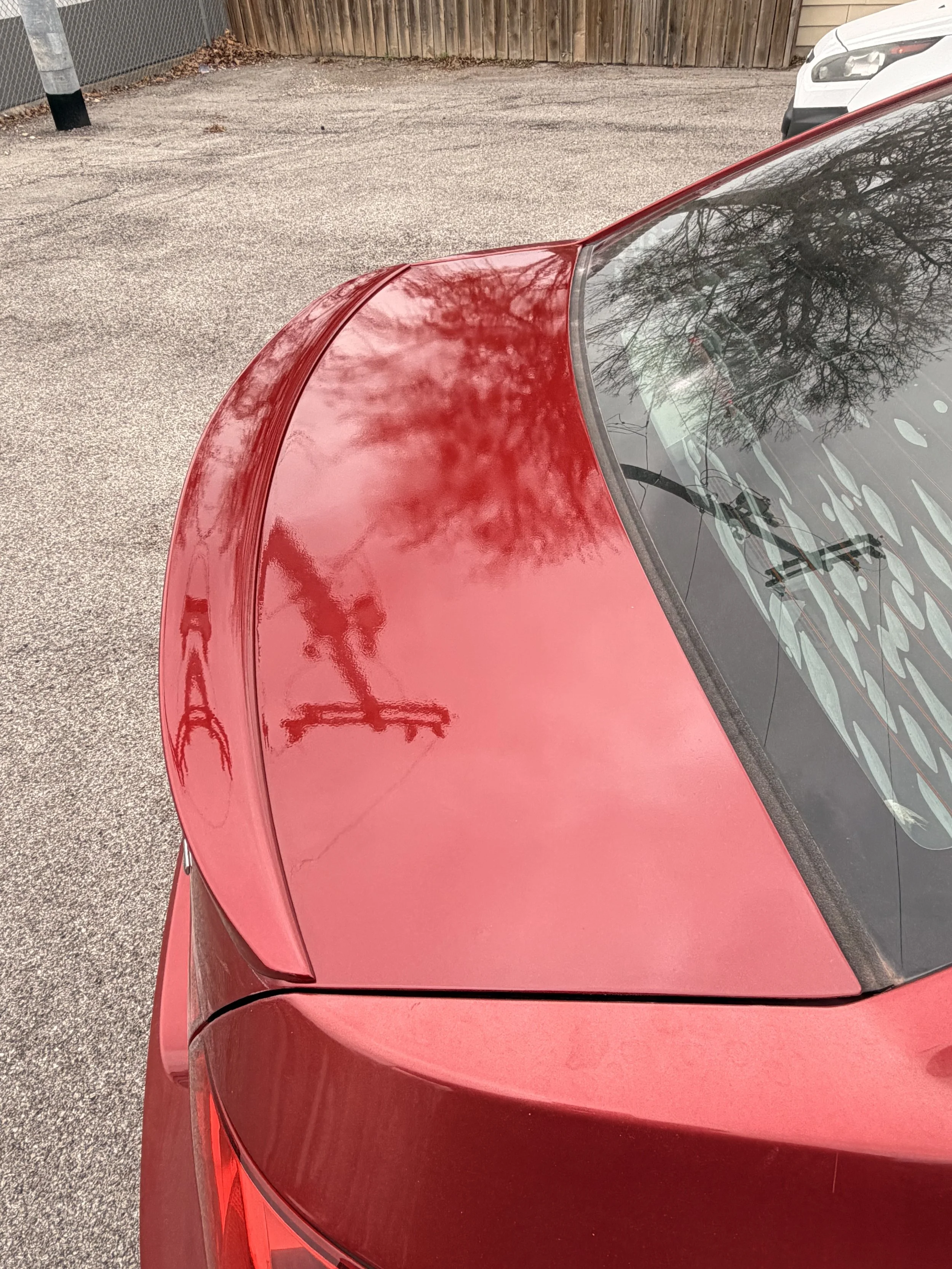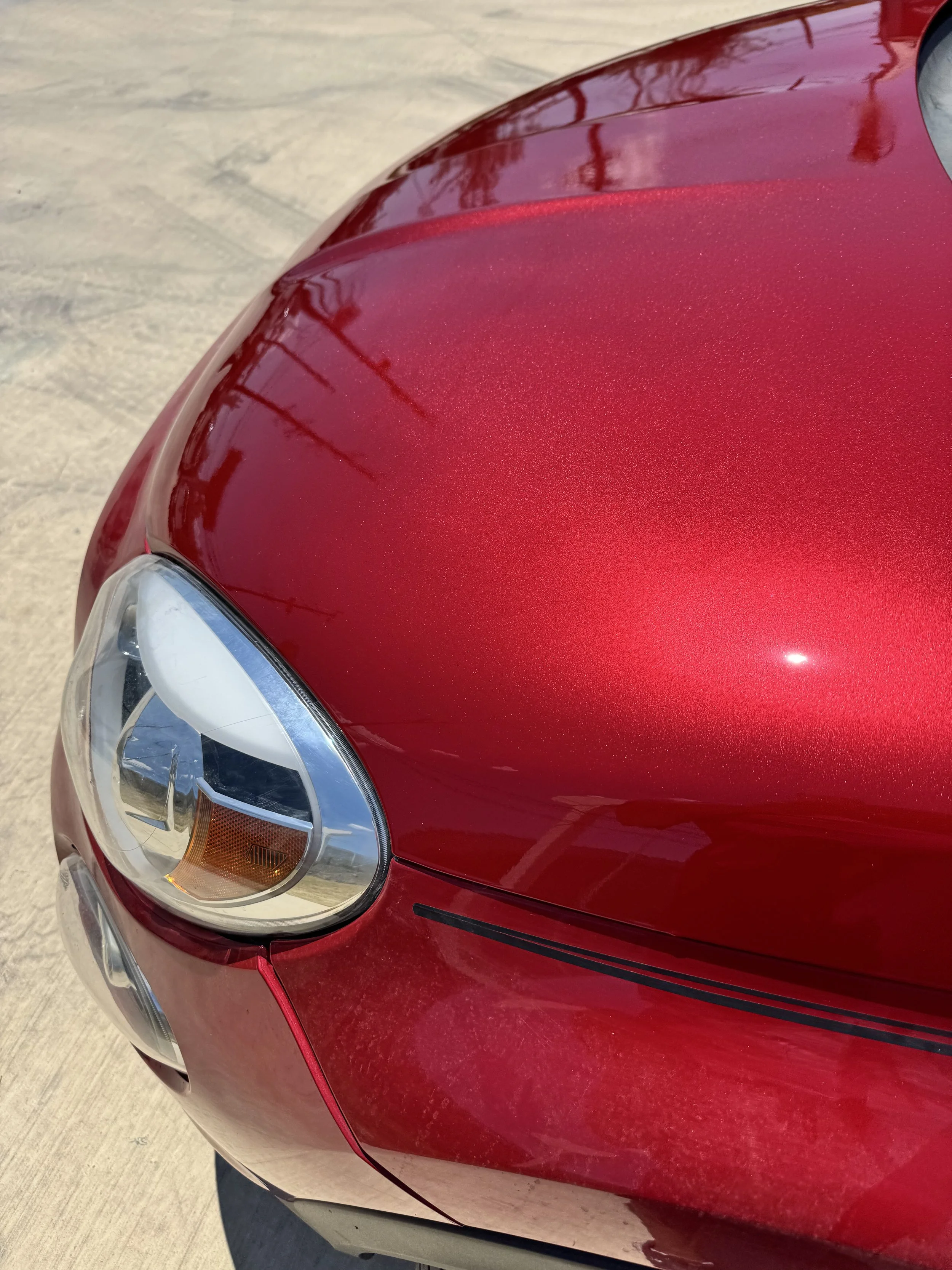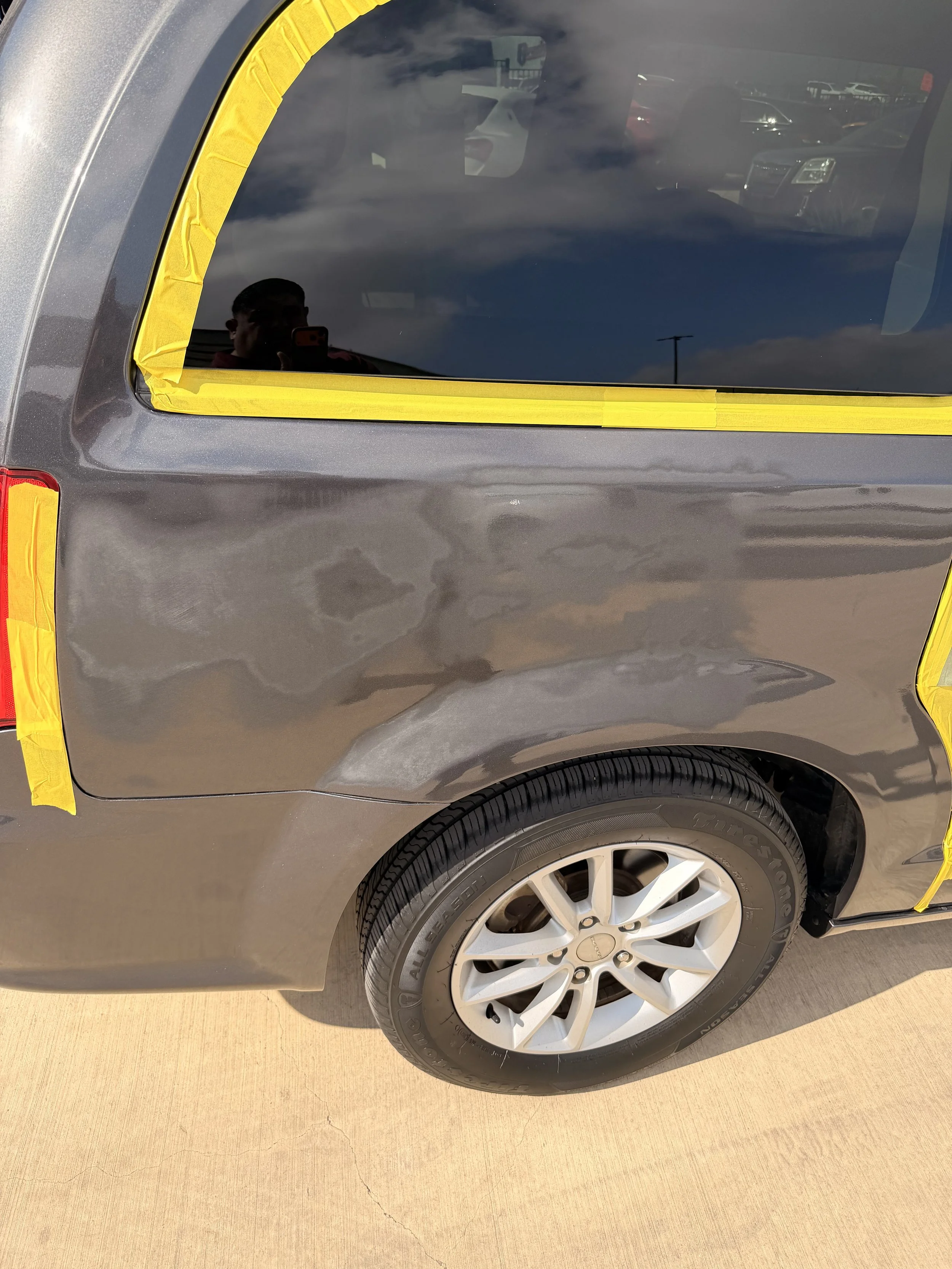 We then prepare the area for paint and clear coating the area for a glossy finish. An infrared heat lamp is used to speed up the drying process. We then polish for a smooth transition between the two areas.
