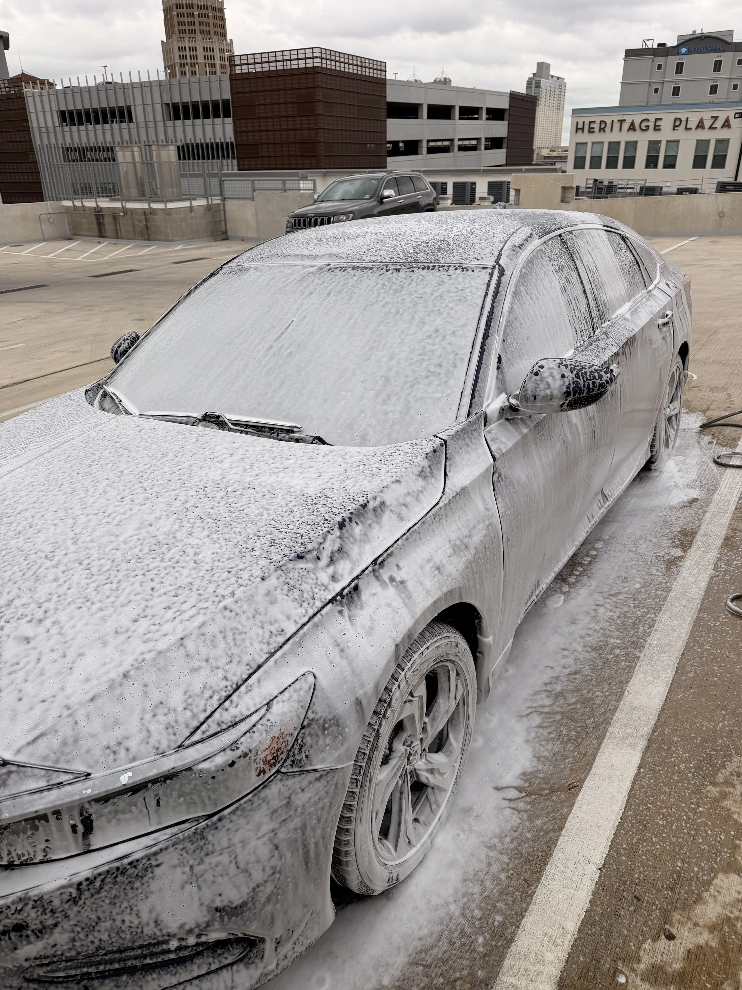 This wash goes far beyond what any tunnel car wash can provide and is far superior than whipping out the old wash bucket and garden hose. Your vehicle will get a pre-wash/foam bath to loosen up any dirt and debris before any physical contact, reducing swirl marks. Next the face of the wheels are cleaned along with the tires, and a second round of soap is applied to your vehicle using a foam canon, the vehicle is then wiped clean using a non abrasive wash mitt. The vehicle is then dried using a soft microfiber towel to ensure a spot free, scratch free finish. Tire dressing is applied, windows are cleaned streak free, hard surfaces are wiped down lightly along with a light cleaning of the carpet.The Wash and wax